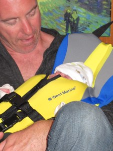 On Father’s day, daddy wanted to row across the harbor for dessert at the Crow’s Nest. So he jammed me into this stupid Infant life jacket, which feels like a straight jacket. What the hell were they thinking?! Look at me! Do I look like I’m having fun? I screamed the entire time… hope they don’t try this stunt again.