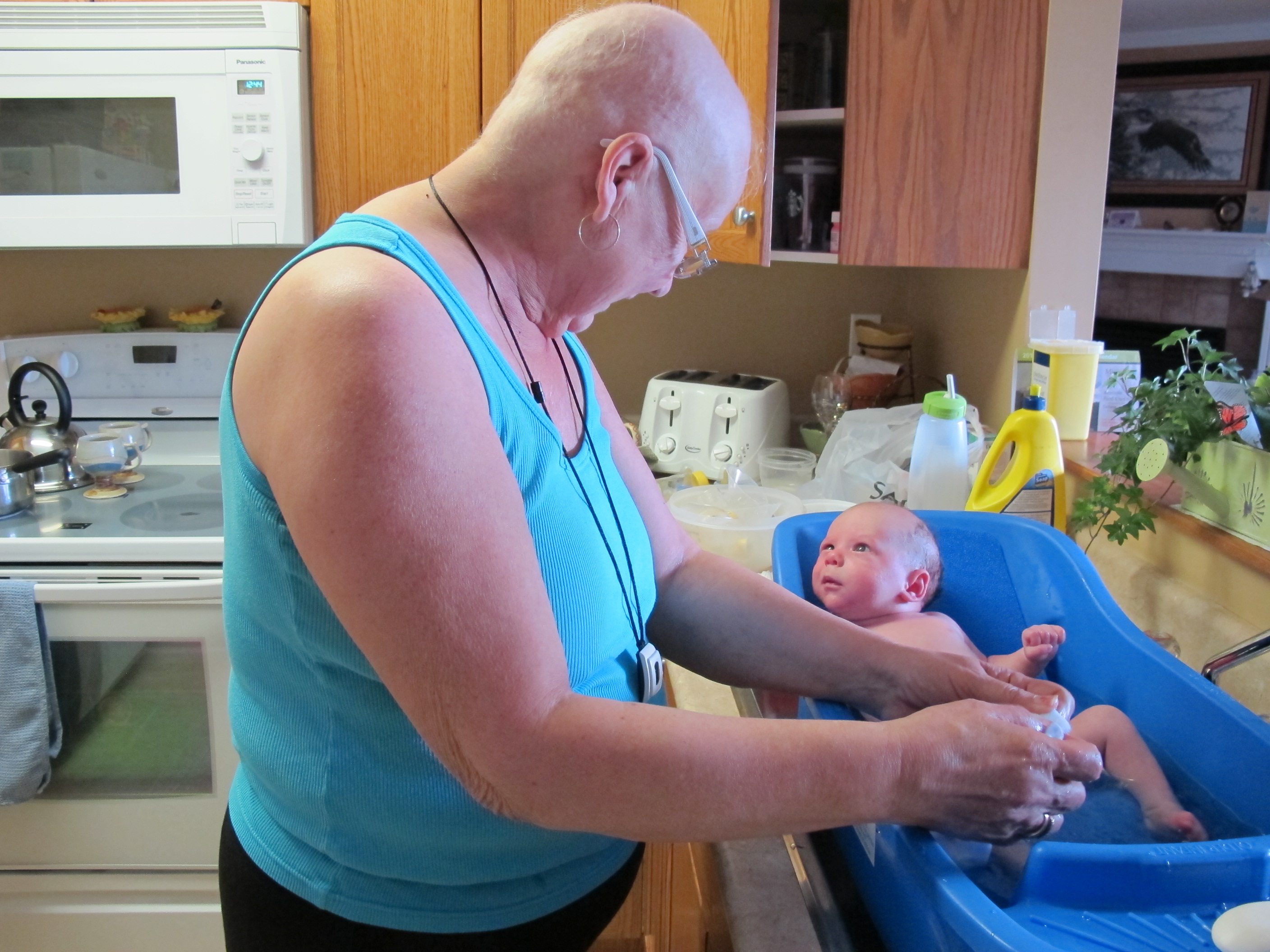 It’s been such a treat getting to know Grandma Whittington. Her condo is filled with everything I could possibly need, so I feel quite at home. I have my own crib right next to mommy and daddy’s bed, and I feel very independent in it. She has a super playpen with colorful animals and a big, comfy bathtub. You’ll notice Grandma and I have the same hairdo!