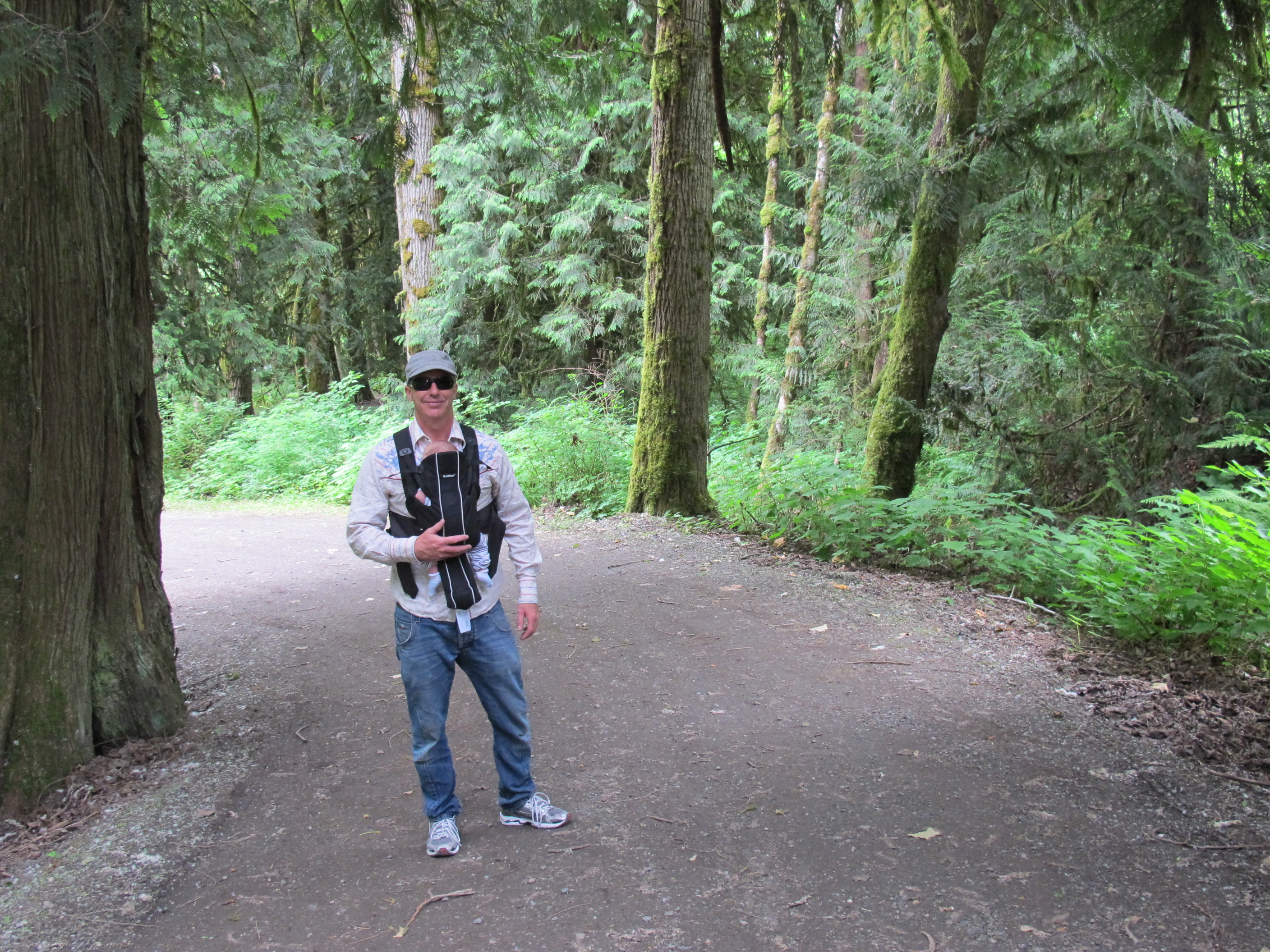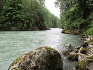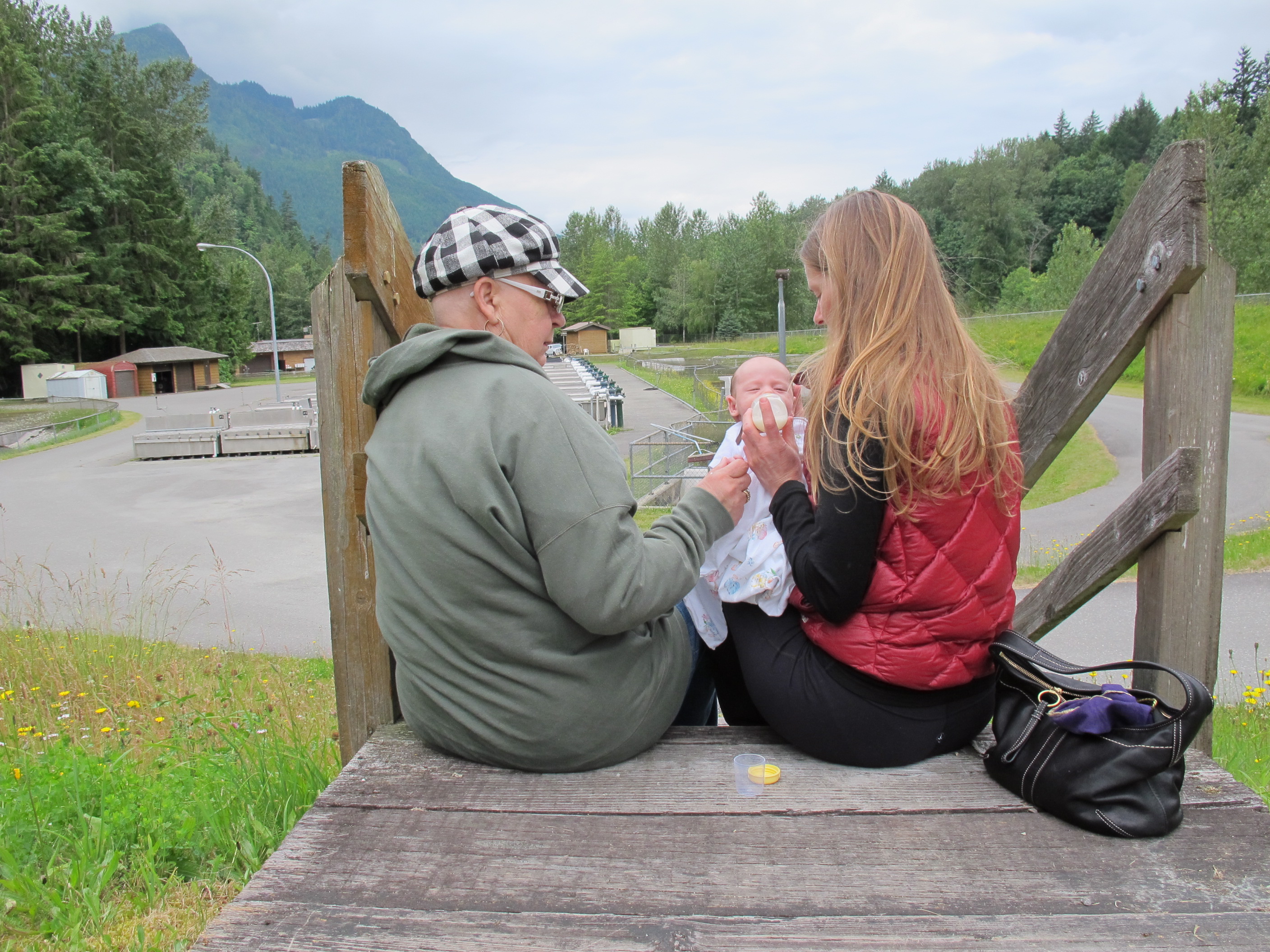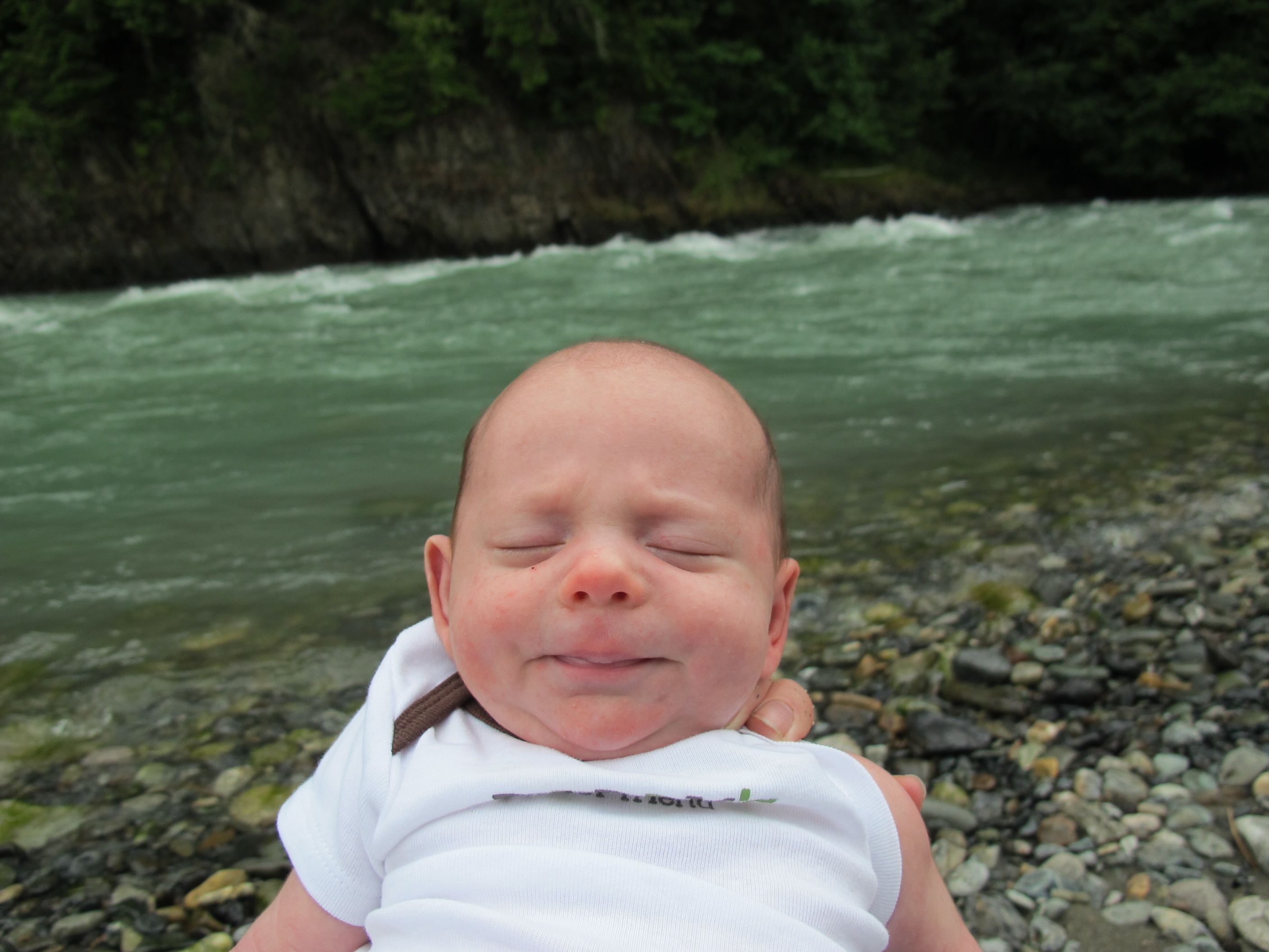 Grandma, daddy, mommy, and I went to the Vedder river today so I could see daddy’s fishing spots. Daddy stopped at a tackle shop along the way and bought some bright fishing lures to build me a mobile that he’ll hang above my car seat. Look at the mighty Vedder:
