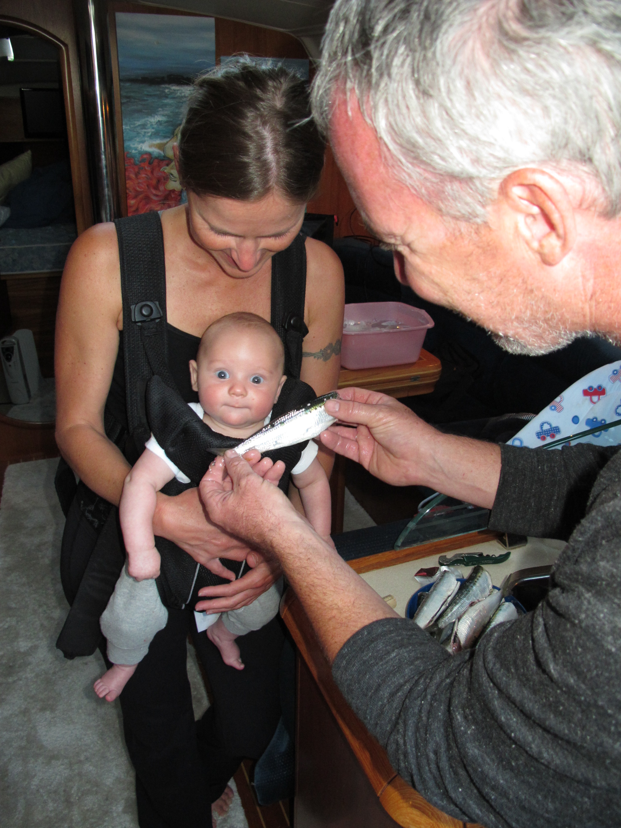 Back in Santa Cruz, mommy and I soaked up the sun on the deck of the boat… relishing the final days before her return to work. Now we’re just spending weekends together, but we make the most of them! Mommy walks me at least 6 miles a day, either in my stroller or the Baby Bjorn. I don’t cry if she keeps moving!
