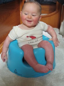 I’m eating anything at all now, but my favorite is Turkey Vegetable Dinner. I can’t understand why you adults only eat this at Thanksgiving and Christmas. I’m using a sippy cup for water now… pretty soon I’ll be drinking out of a wine glass! I can hold my bottle all by myself, so mommy and daddy just need to make my bottle and then roll over and konk out again, as I’m quite capable. I’m talking all the time now, and I especially love to practice my vowels and consonents first thing in the morning or when I’m just about to nod off. I yell Whooo! Ahrrr! Rawr!
