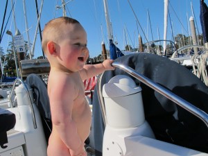 Mommy usually surrounds me with pillows, but Daddy thinks it’s time for me to learn how to fall naturally, since we’ll be moving into the house soon. I have to get used to hardwood and cement floors (and people say living on a boat is dangerous for a baby).