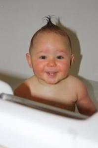 There’s nothing more fun than having a bath with my ducky, octopus, pelican, turtle, whale, and crab. Especially having a bath with mom… she keeps putting my head under water so I’ll pass my swimming lessons at next month’s Seahorse class. Did I tell you she’s taking the whole month of April off? We’re going to swim, run, and bask in the sun in our back yard. She’s going to build me a sandbox, and daddy’s building us an outdoor shower so we can cool down (and so I don’t track sand into the house).