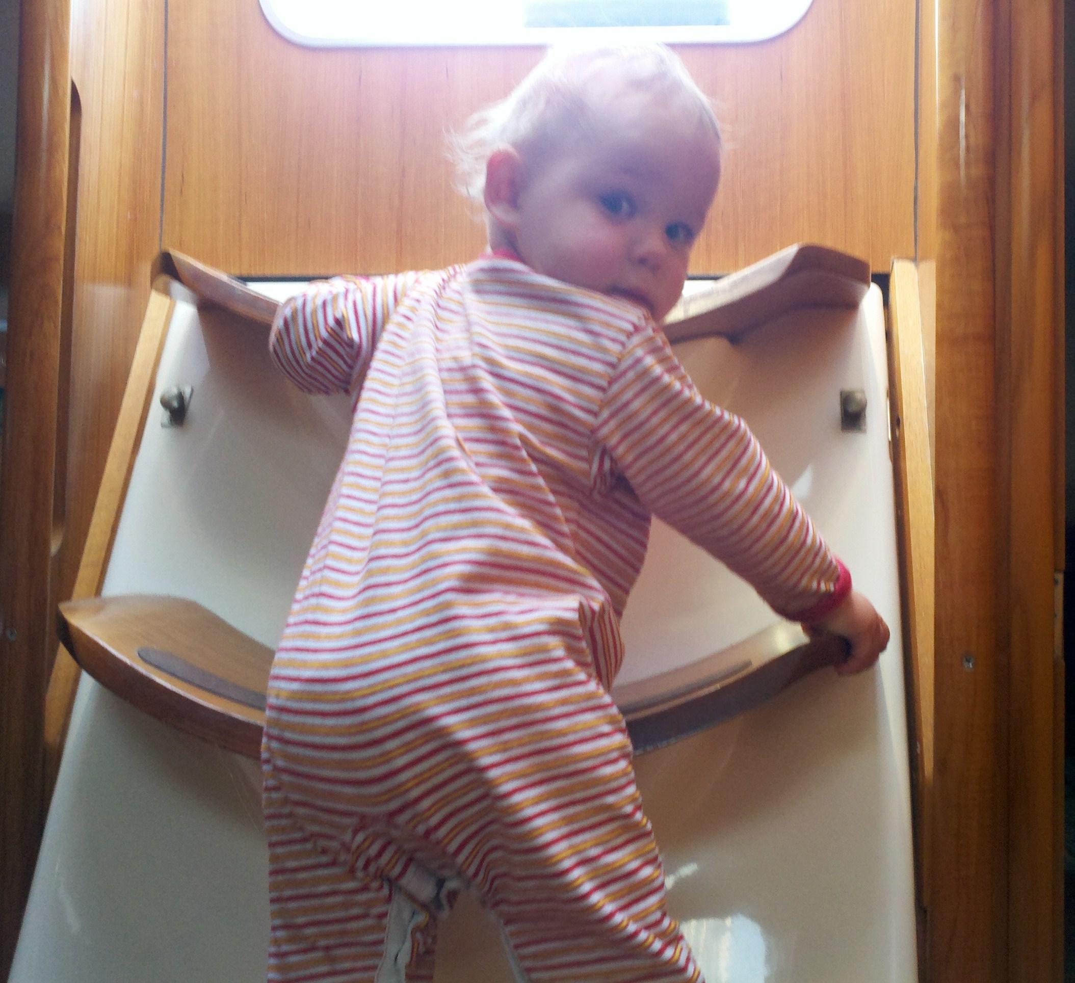 I climb everywhere: onto patio chairs, up step stools and ladders, into the stroller, and up the boat stairs.