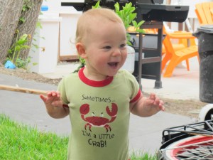 It was fun seeing Auntie Gail and Doug too… I remind mommy of Uncle Tony, the way I squat and eat lemons. At Grandma W’s house, I made such a mess of her spaghetti that she had to give me a bath. Both Grandmas are coming to look after me in August… can’t wait to see them again!