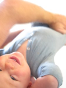 I squeal like crazy during my morning tickle. I love to jump on the bed, or let Daddy toss me onto the fluffy down comforter or clobber me with a pillow. I have upside down time every day.
