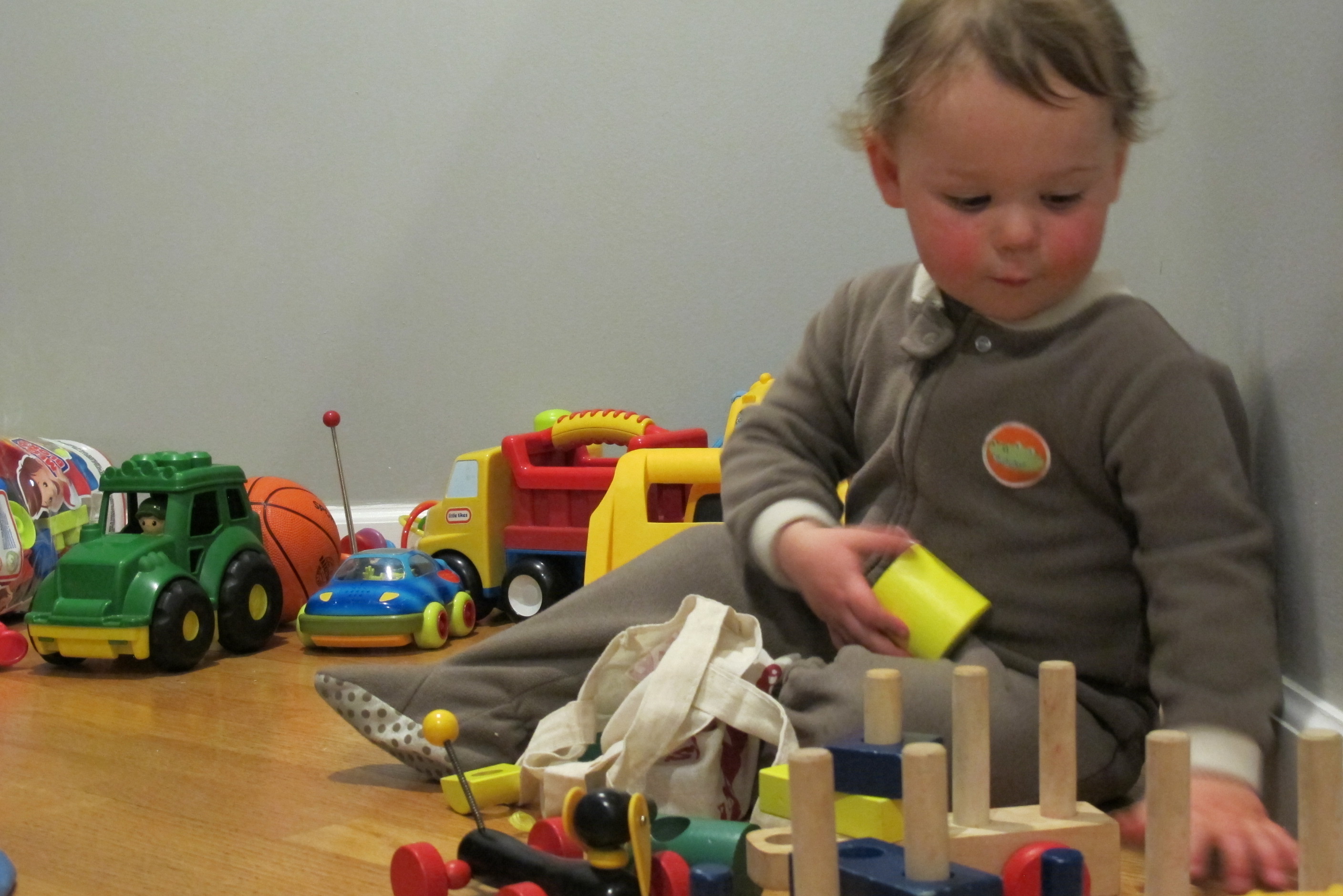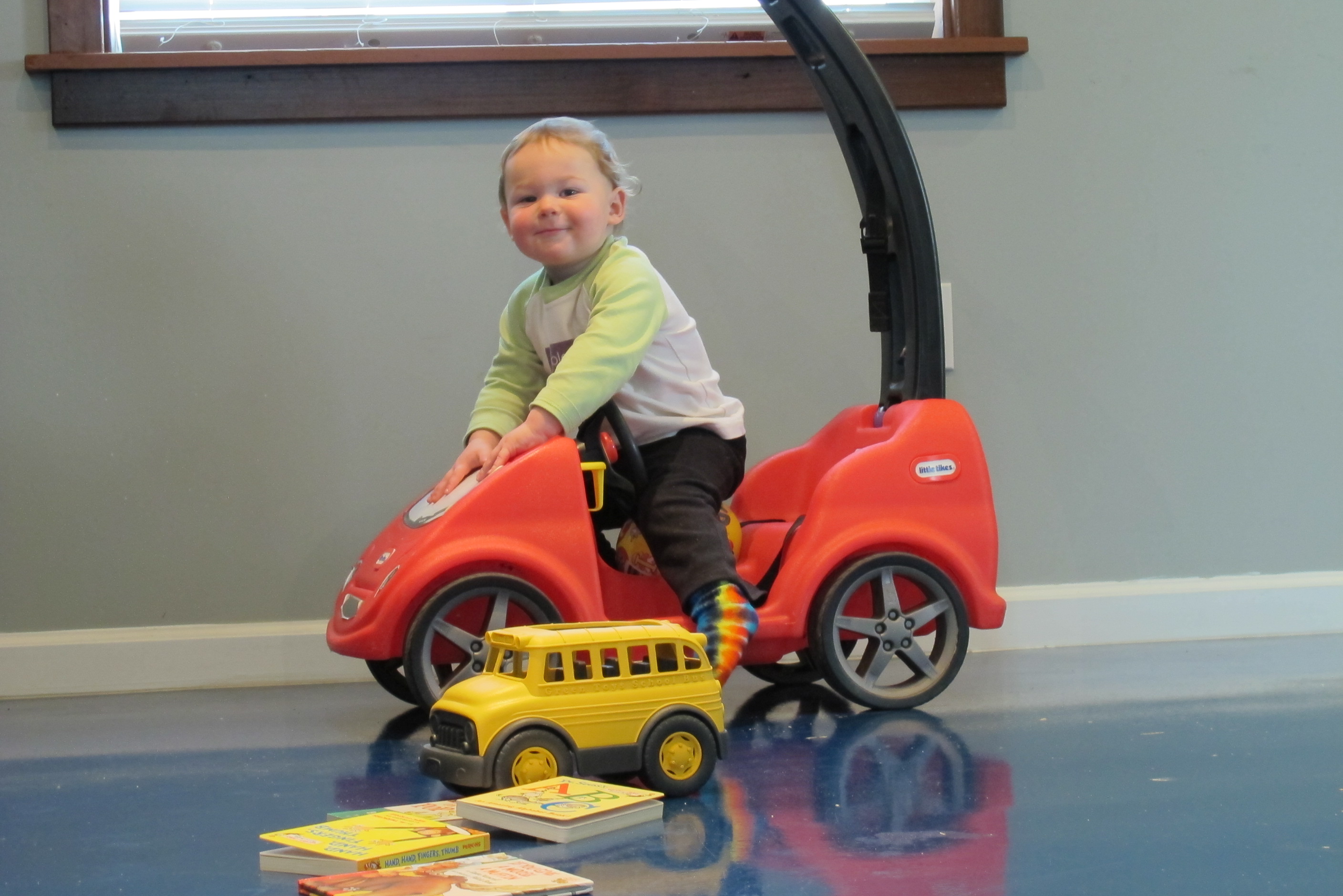 I say “truck” 150 times each day. I love dump trucks, semi-trucks, cement trucks, back hoes, excavators, and school buses. And best of all, tractors and fire trucks! (wee-ooo! wee-ooo! wee-ooo!) I watched our neighbor use a fork lift to take the body off a flat-bed truck (riveting!). And when we’re jogging, I clutch a wheel in each hand, and wonder what kind of truck they came off. My favorite books are “Trucks” and “Things that Go.” Mommy’s taught me to say “10-4 good buddy” when we’re driving down the road and I see a big rig.