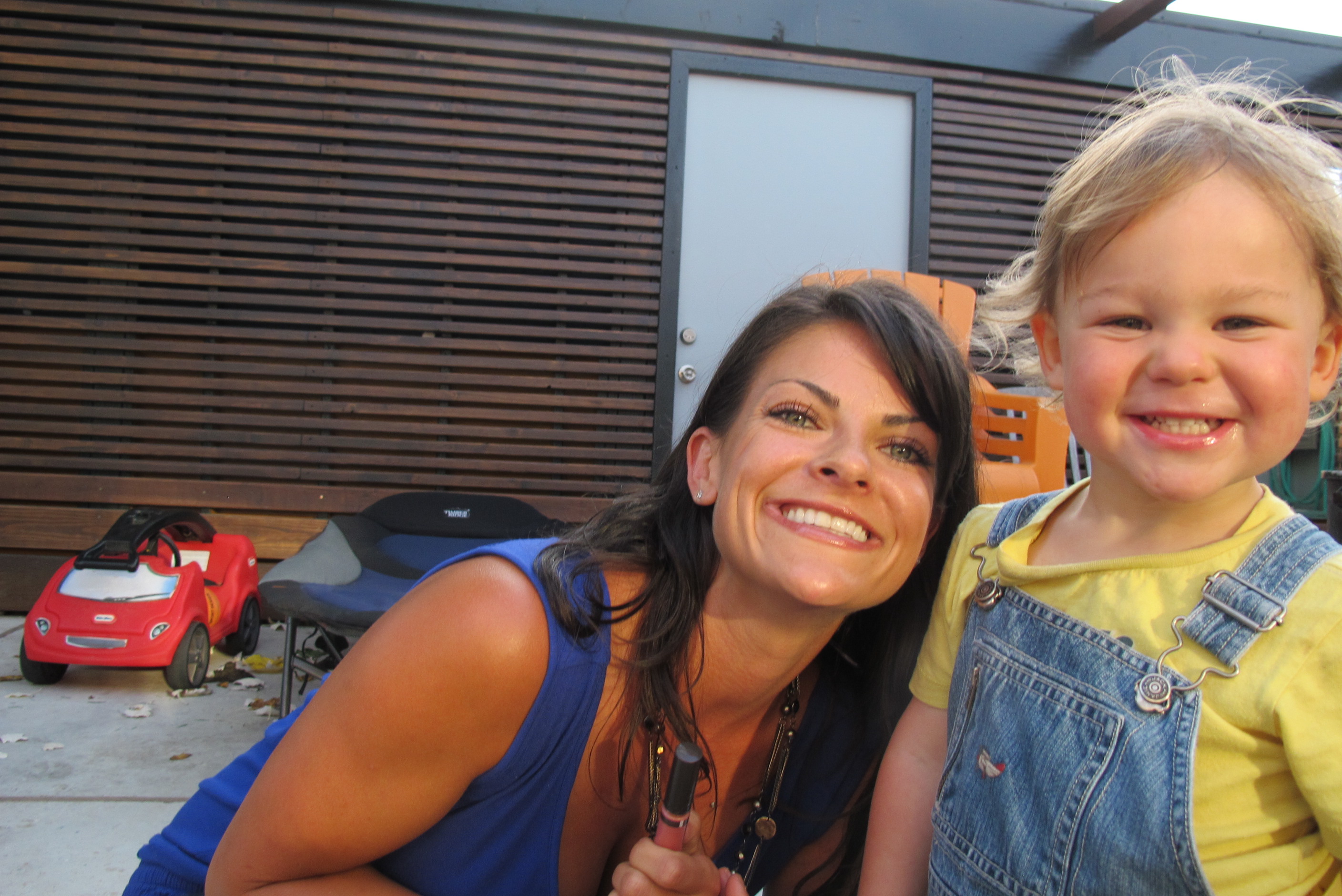 But it’s more fun when friends come to visit. Shae puts lip-gloss on me.