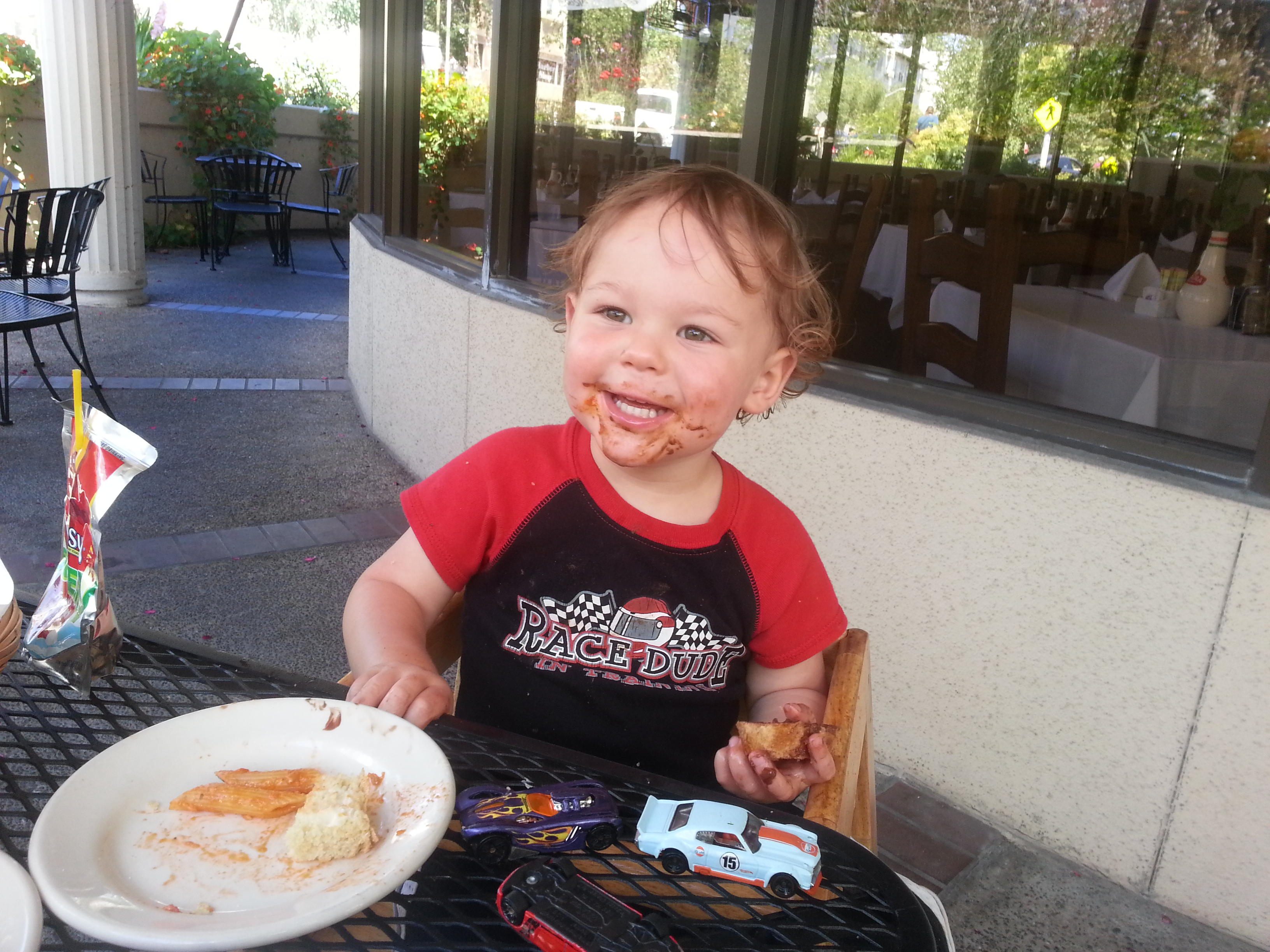 Then Mommy tows me downtown with her bike. We have lunch at Café Mare: salmon pasta and then nutella toast. Yummy combination!