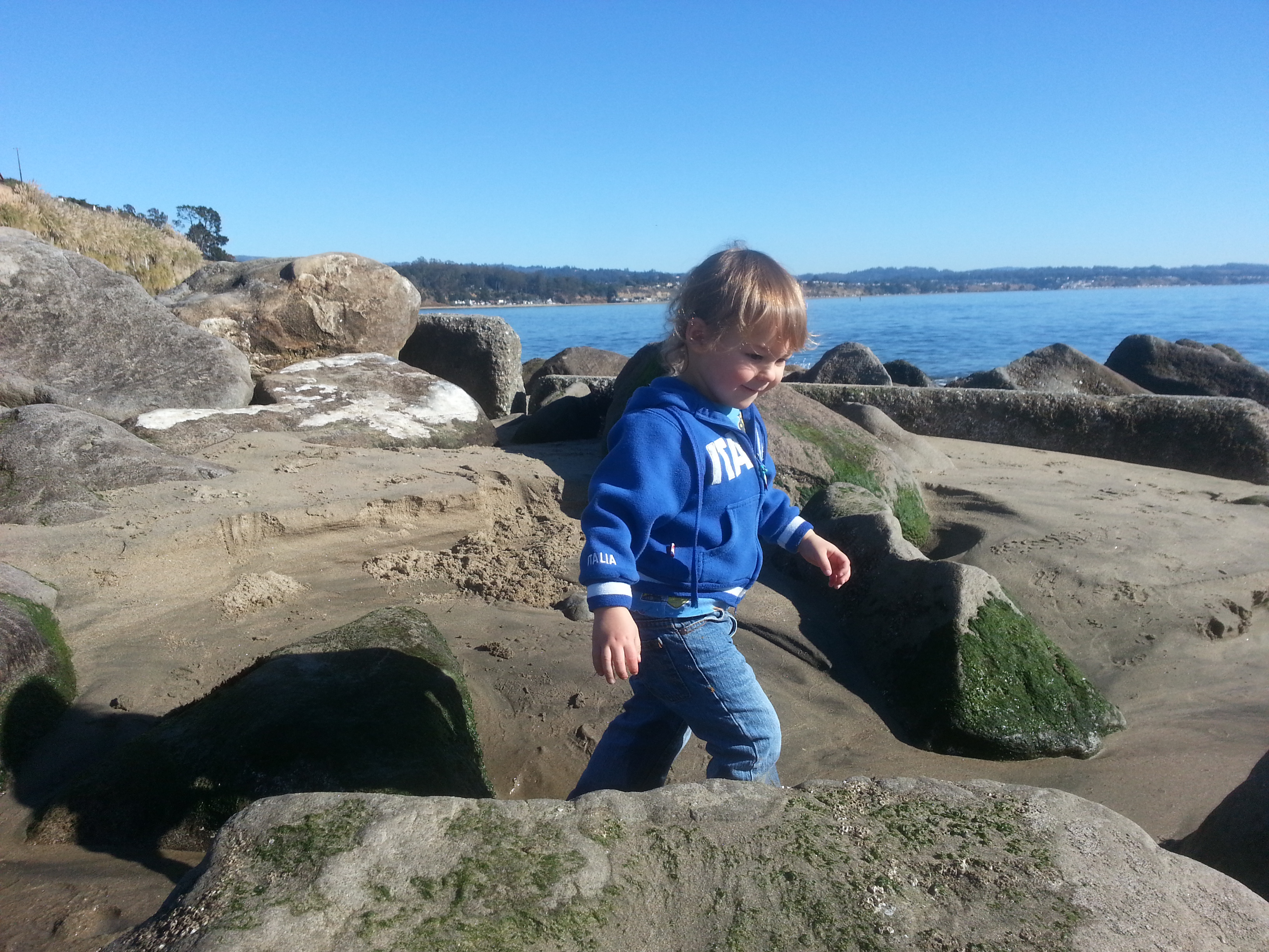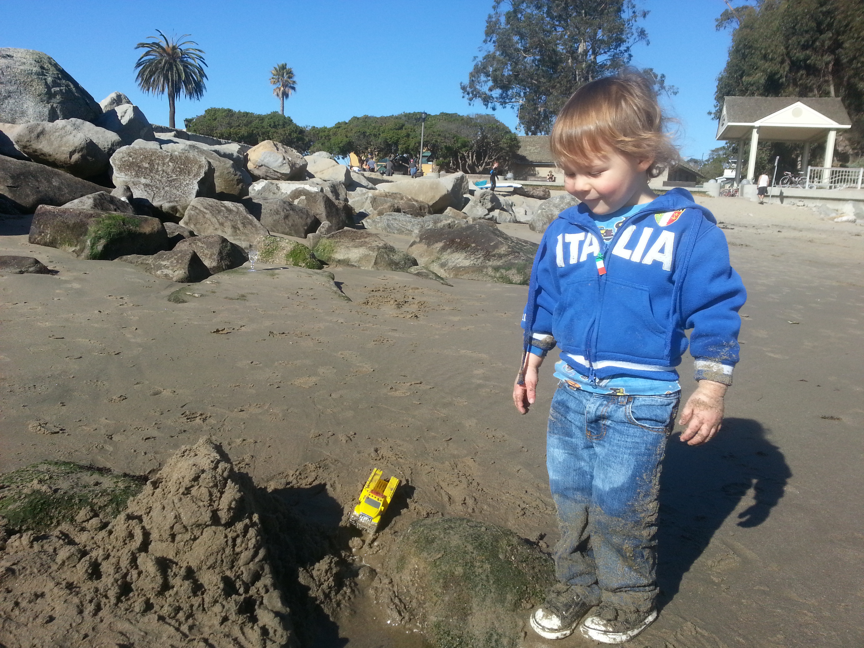 For Christmas afternoon, Daddy, Mommy, and I rode bikes to Capitola beach. 75*F… perfect for mud pies and Champagne!