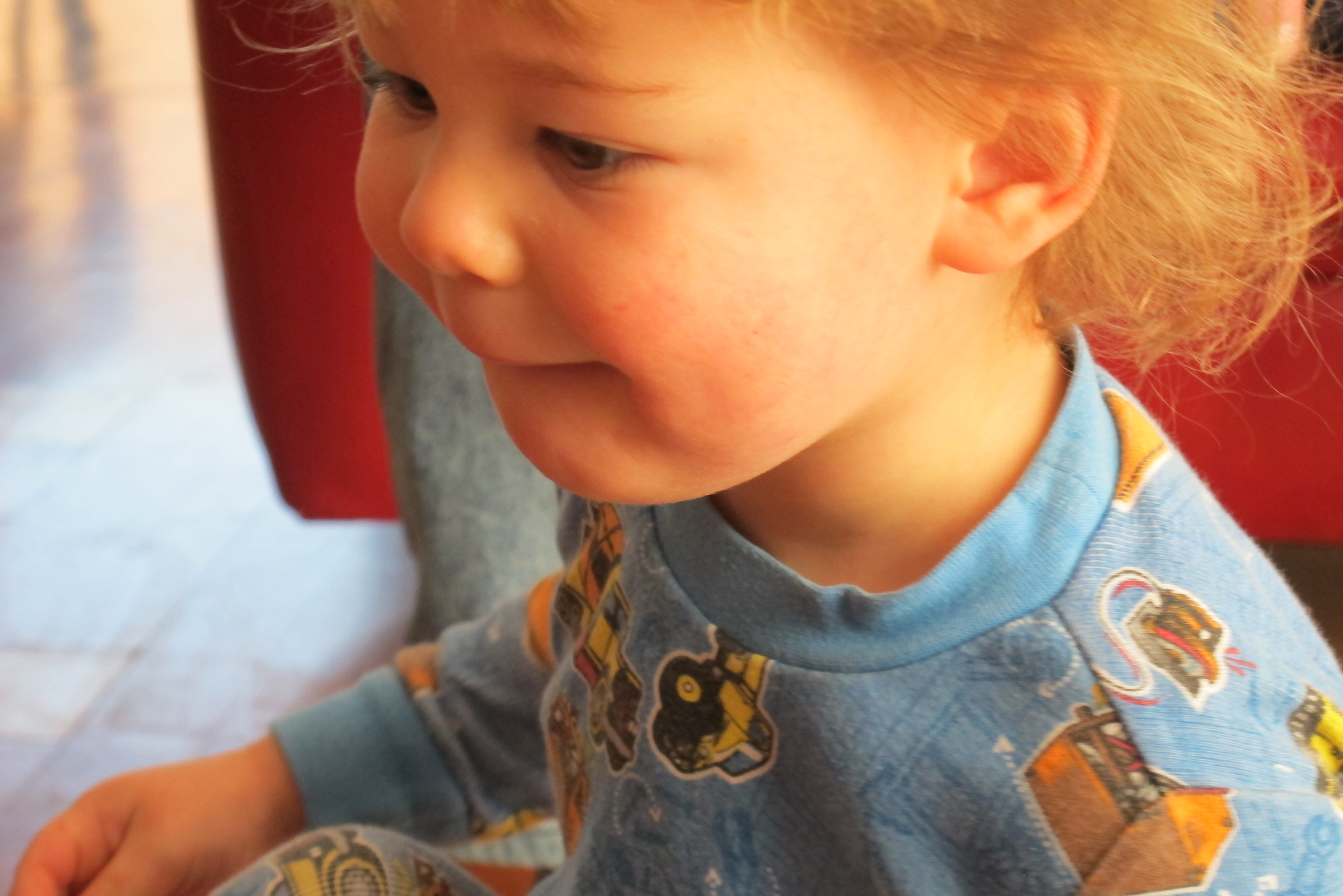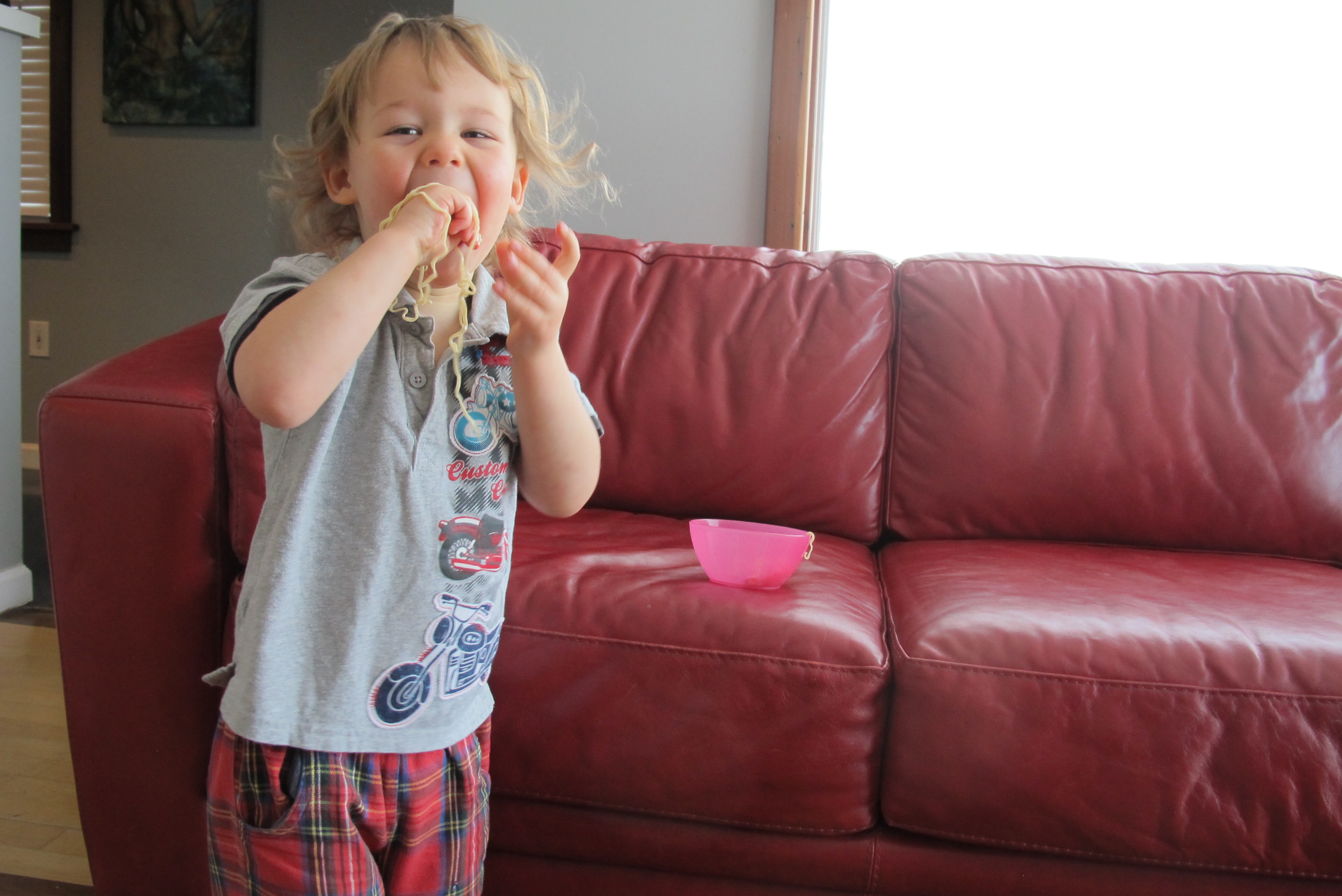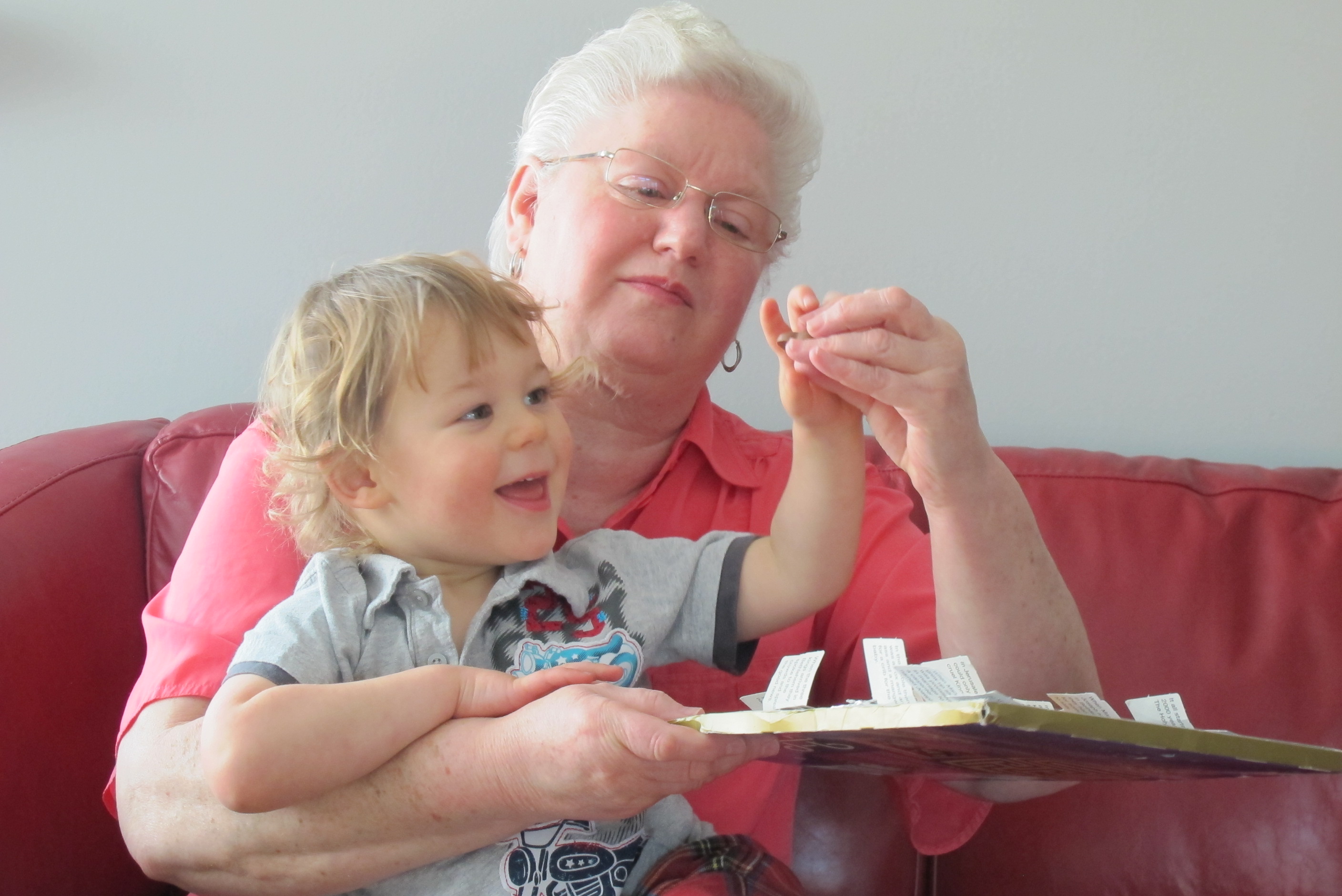 Snacktime is better with Grandma than with Mommy… I get fun food that I’ve never eaten before, like Ichiban noodles and butterscotch pudding. I made Christmas cookies with my very own rolling pin… my favorite shapes were the airplane and the letter R.