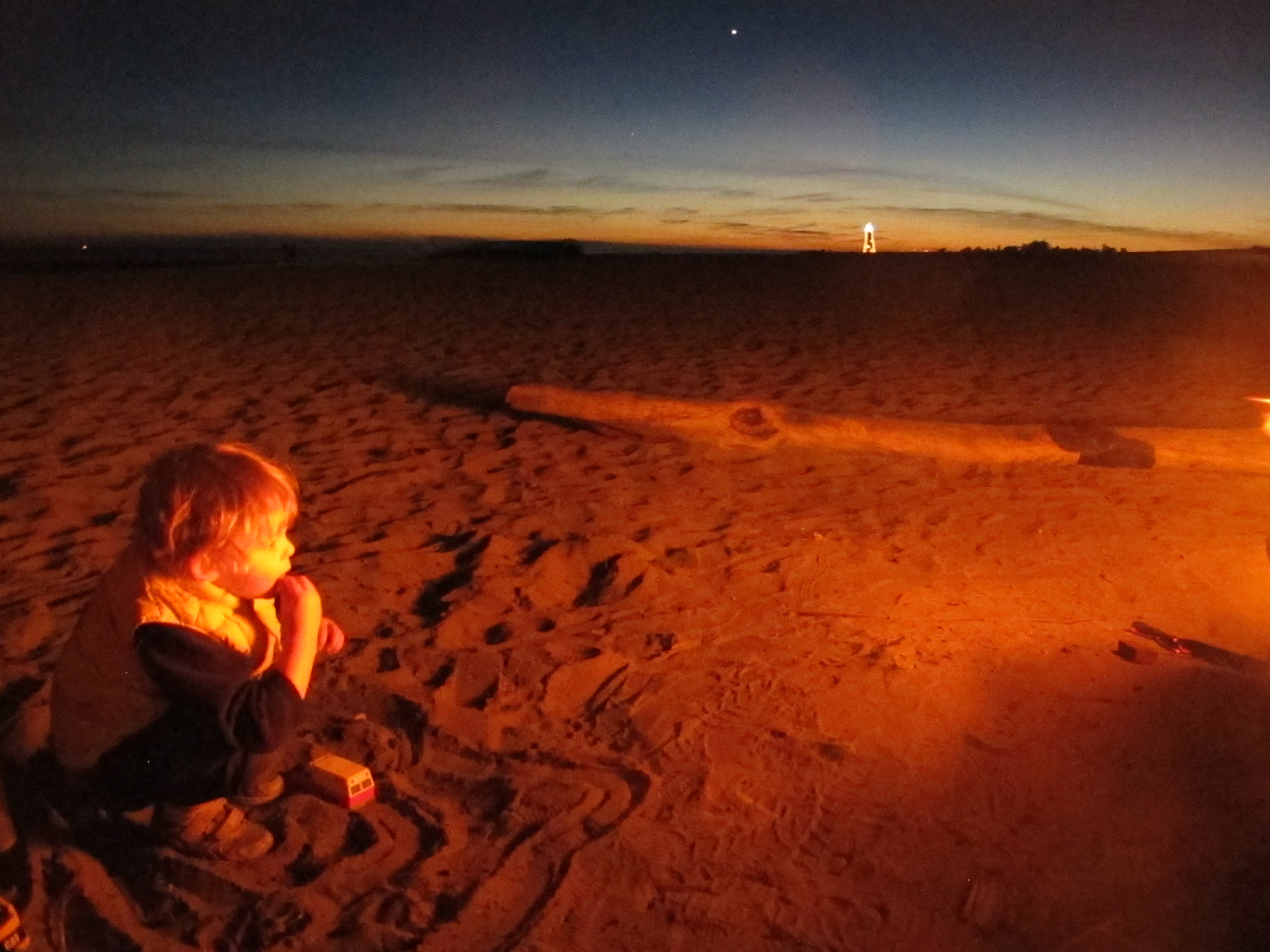 On Christmas Eve, we went to the beach for a bonfire. They had whiskey and chips while I built roads in the sand with my machines. Every once in a while, I’d run up the lifeguard tower so Daddy would chase me. When he caught me, he rolled me all the way back to the firepit… I had so much sand in me that I had to shower outside before coming into the house.