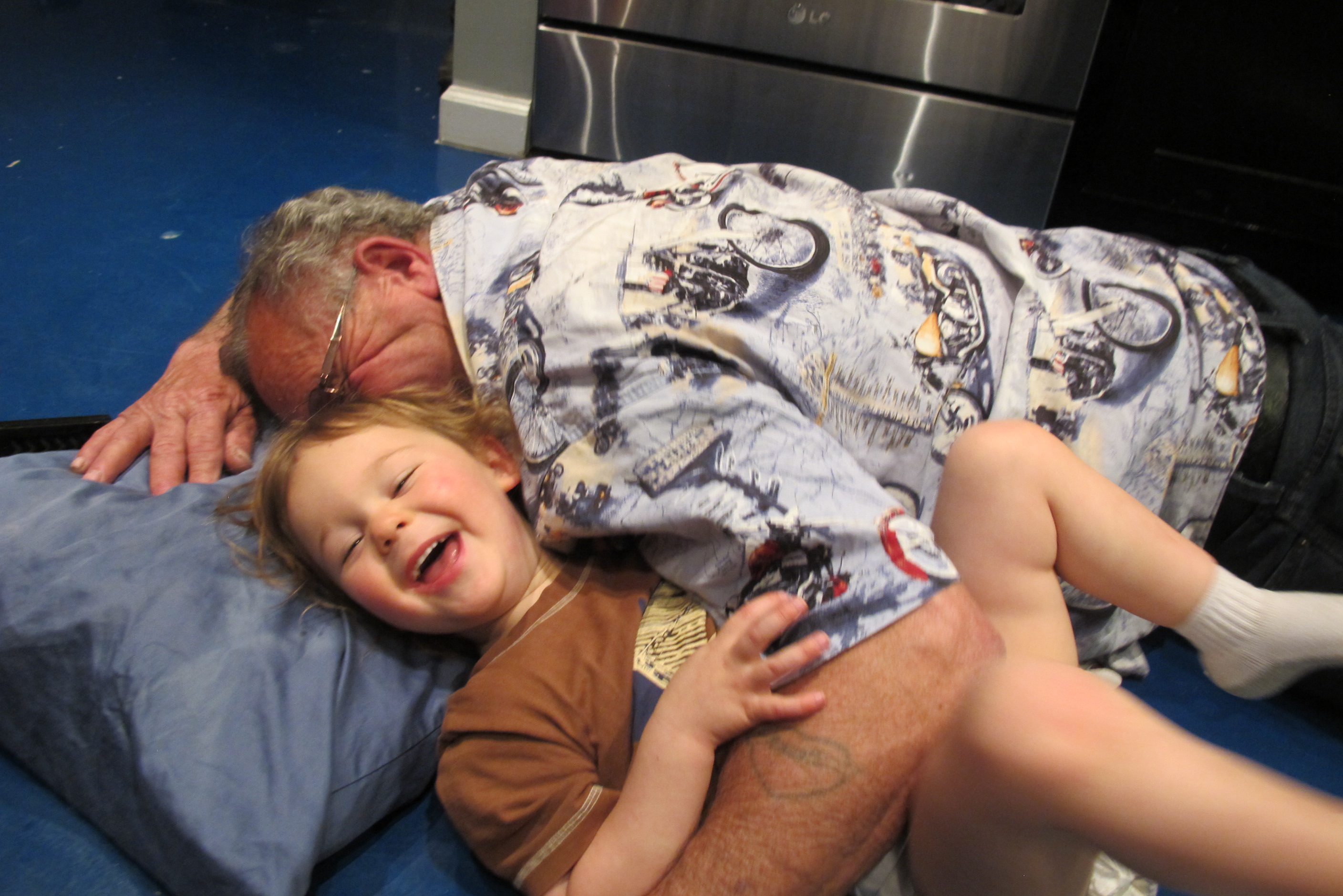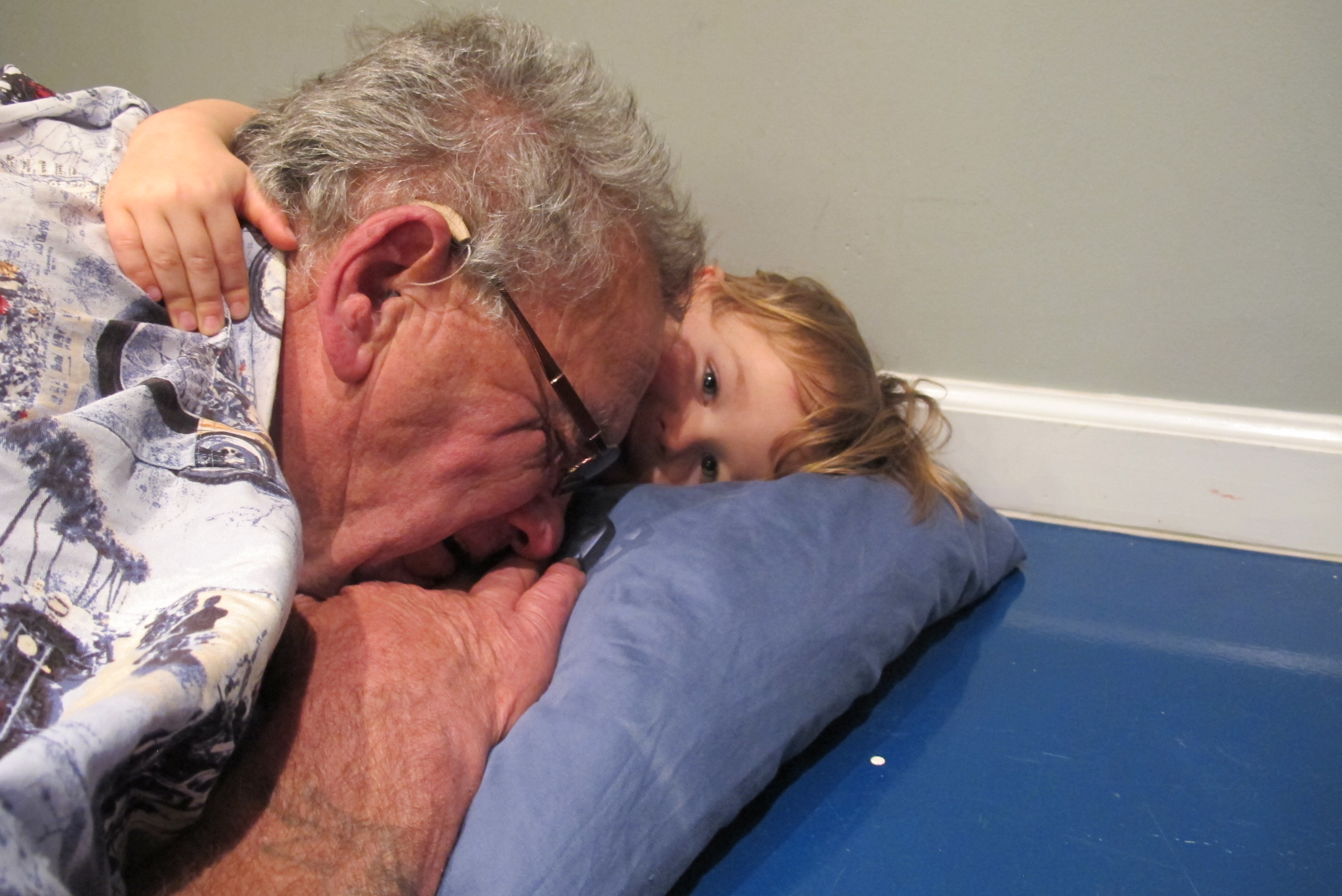 Grandpa is really good at playing. He builds the toughest Lego firetruck! He climbs into my ambulance and turns his hearing aid down when I scream, “Wee oooh, wee oooh!”