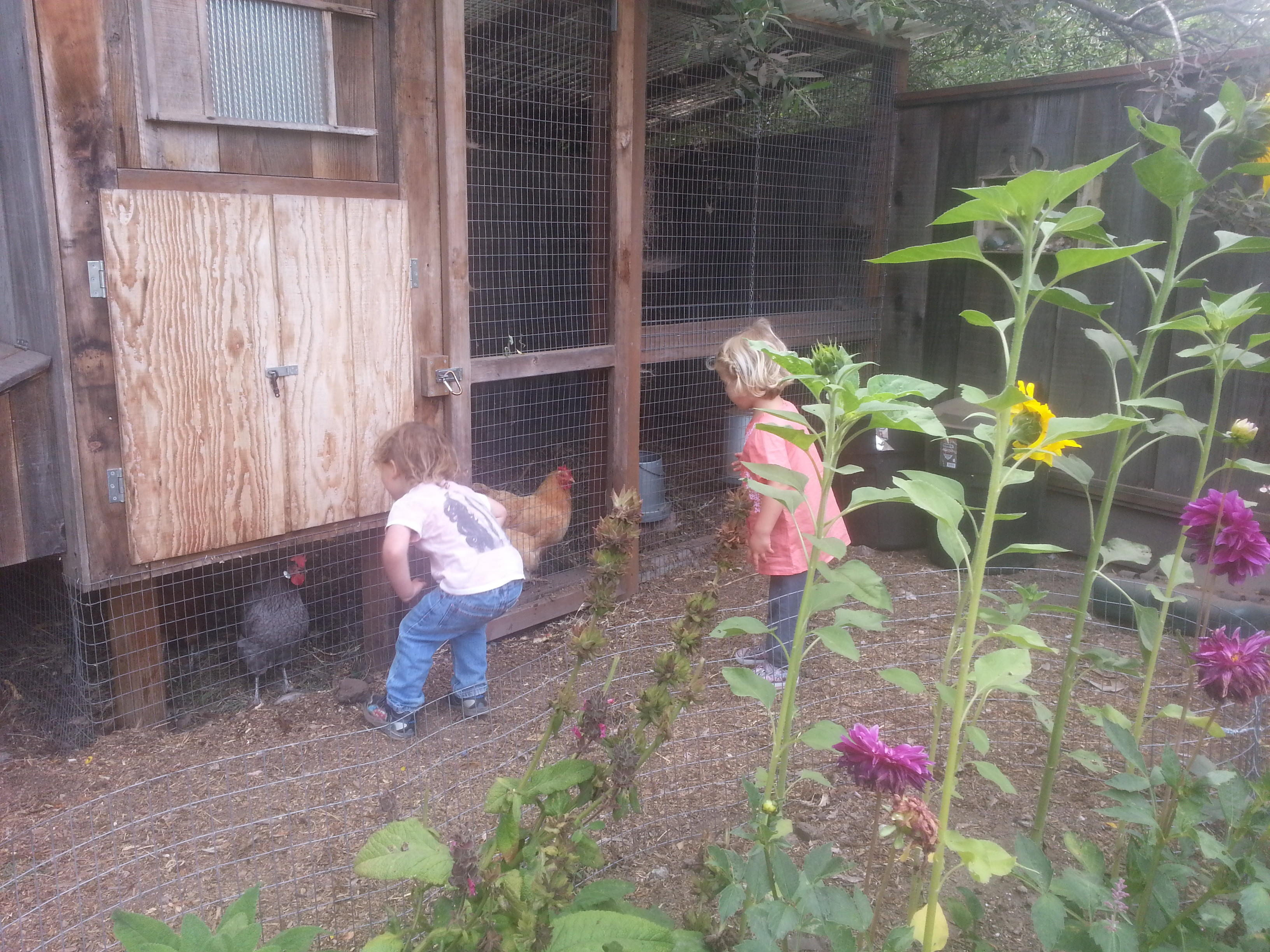 At Freya’s birthday party, we fed chickens, did art projects, pulled carrots out of the garden, and ate cupcakes with purple icing and toy animals on top.