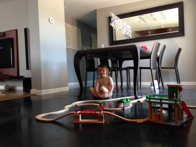 Every Saturday, Mommy and I go searching for train track pieces… I’m building tracks in every room of the house!