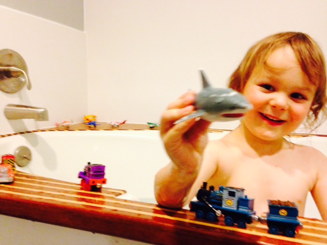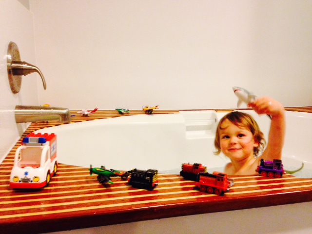 trains2My legs are sore from growing, so I need extra long soaks in the bathtub.