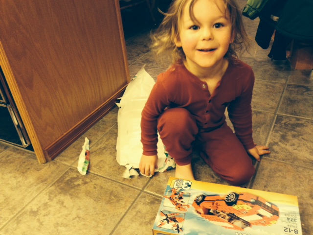 lego_giftI got tons of presents, like a 4×4 that flips and a remote-controlled monster truck.