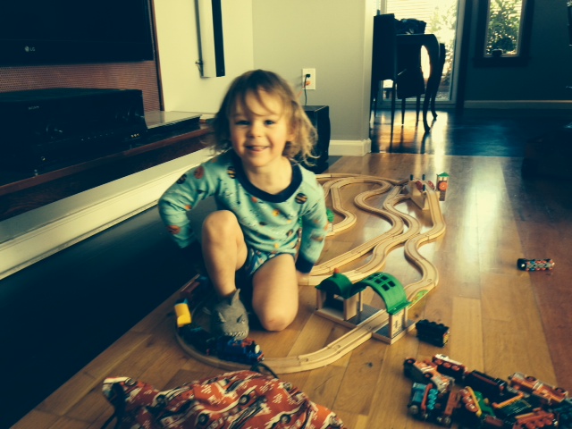captain_americaAt night, I’m so exhausted from chasing waves. I wind down by building train tracks that travel all over the house, under couches and around table legs.