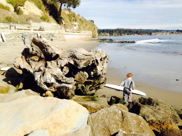 watching_surfOn Sundays, we bring Prosecco and picnic foods to the beach, and I build forts under the logs or scale the rocks. At low tide, we hunt for hermit crabs. I bring my sand toys and use them to attract new friends.